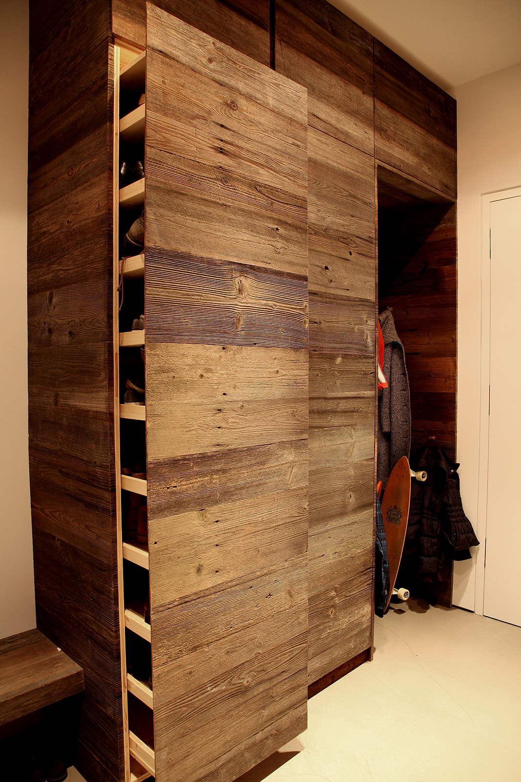Und der rockt sogar, der gute alte Einbauschrank. Antikes Massivholz in herausragender Verarbeitung passt sich geradezu organisch in die baulichen Gegebenheiten ein, die Vielzahl an Details fesselt den Betrachter, durchdachtes Design erfreut den Benutzer und die faszinierende Front nimmt uns alle mit auf eine Zeitreise.